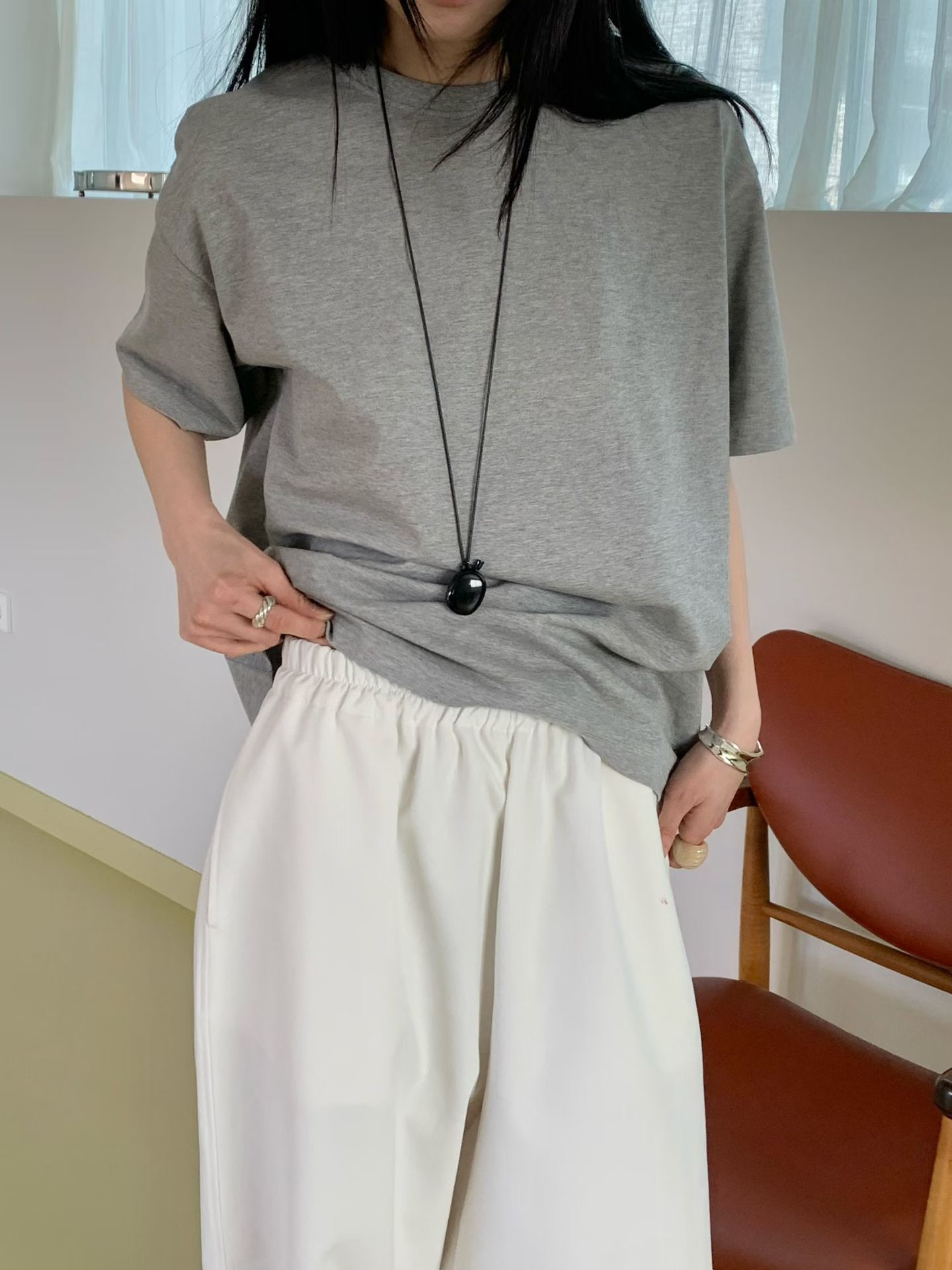落肩設計 胸寬56cm 衣長67cm